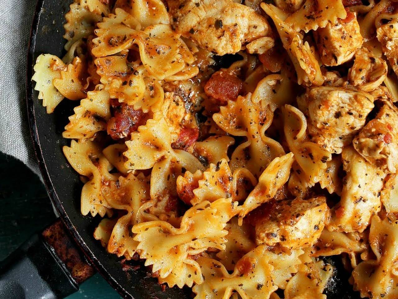 This is going to be your new if this were my recipe, i'd call it spicy chicken farfalle.
